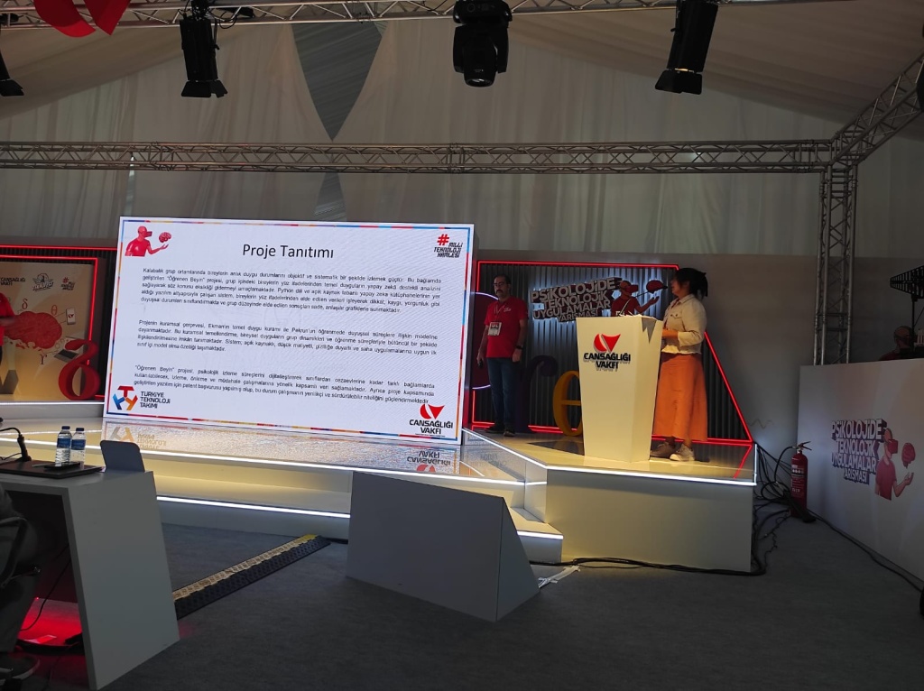 “Öğrenen Beyin”, sınıf ortamında öğrencilerin duygusal durumlarını (dikkat, kaygı, yorgunluk, öfke vb.) yapay zekâ tabanlı yüz ifadesi analizi ile takip ediyor. Öğretmenlere anlık grafikler sunarak öğrencilerin psikolojik ihtiyaçlarını fark etmeyi ve ders süreçlerini buna göre uyarlamayı sağlıyor.